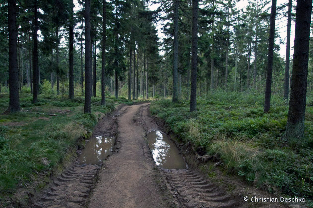 Amphibien zählen zu den gefährdetsten Tiergruppen. Um ihnen zu helfen, reicht manchmal bereits das Nichtstun, beispielsweise das Unterlassen von Wegbefestigungen. Dann können sich z.B. Bergmolche in solchen Fahrspuren fortpflanzen.