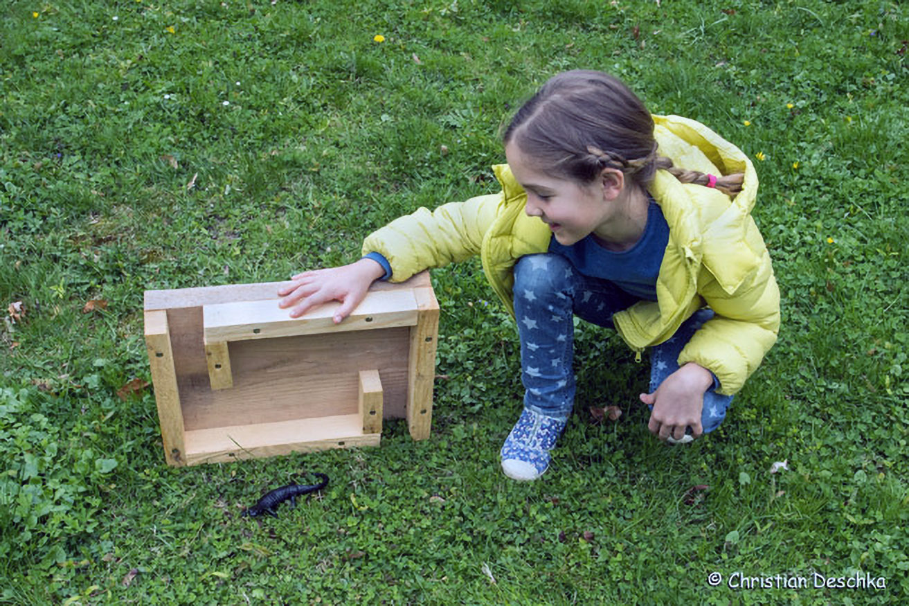 Macht man sich aktiv auf die Suche nach Alpensalamandern, kann man tagsüber z.B. unter hohl liegenden Brettern und Steinen fündig werden.