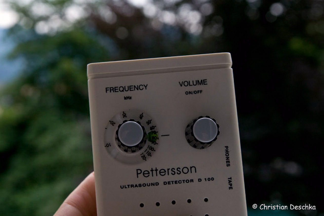 Mit Hilfe eines Ultraschall-Detektors kann man die Rufe der Fledermäuse für uns Menschen hörbar machen. Einsteigergeräte geben dann beim Auftauchen von Fledermäusen ein Knattern von sich.