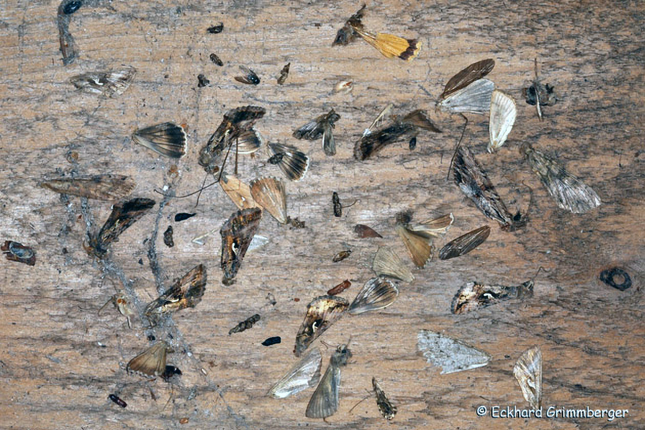 Da diese öfter aufgesucht werden, kann man sie an Ansammlungen von Nachtfalterflügeln und Kot erkennen.