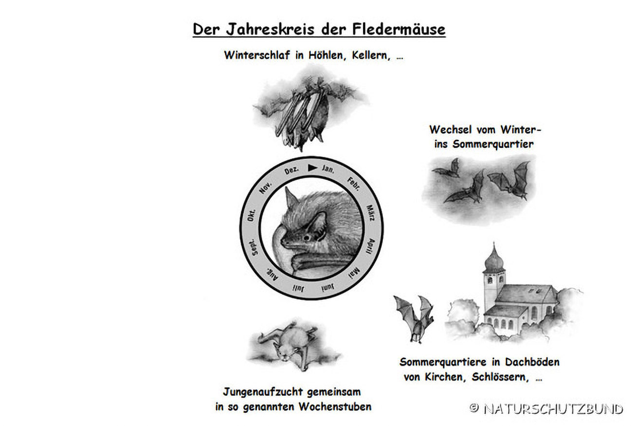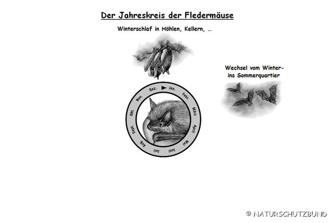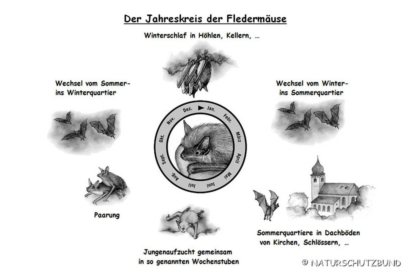 Im Herbst fliegen die Fledermäuse schließlich wieder in ihre Winterquartiere zurück, wo sich der "Jahreskreis der Fledermäuse" schließt.
