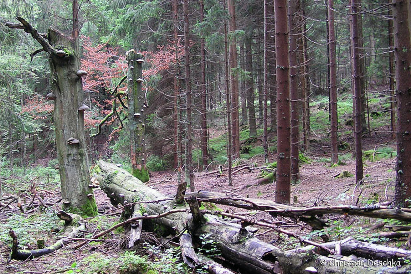 Tote Bäume bieten nicht nur Fledermäusen, sondern auch unzähligen anderen Arten (Baumpilzen, Insekten und deren Larven, ...) Lebensraum. Es sollte daher auch im Wirtschaftswald ein gewisser Anteil der Bäume dem natürlichen Verfall überlassen werden.