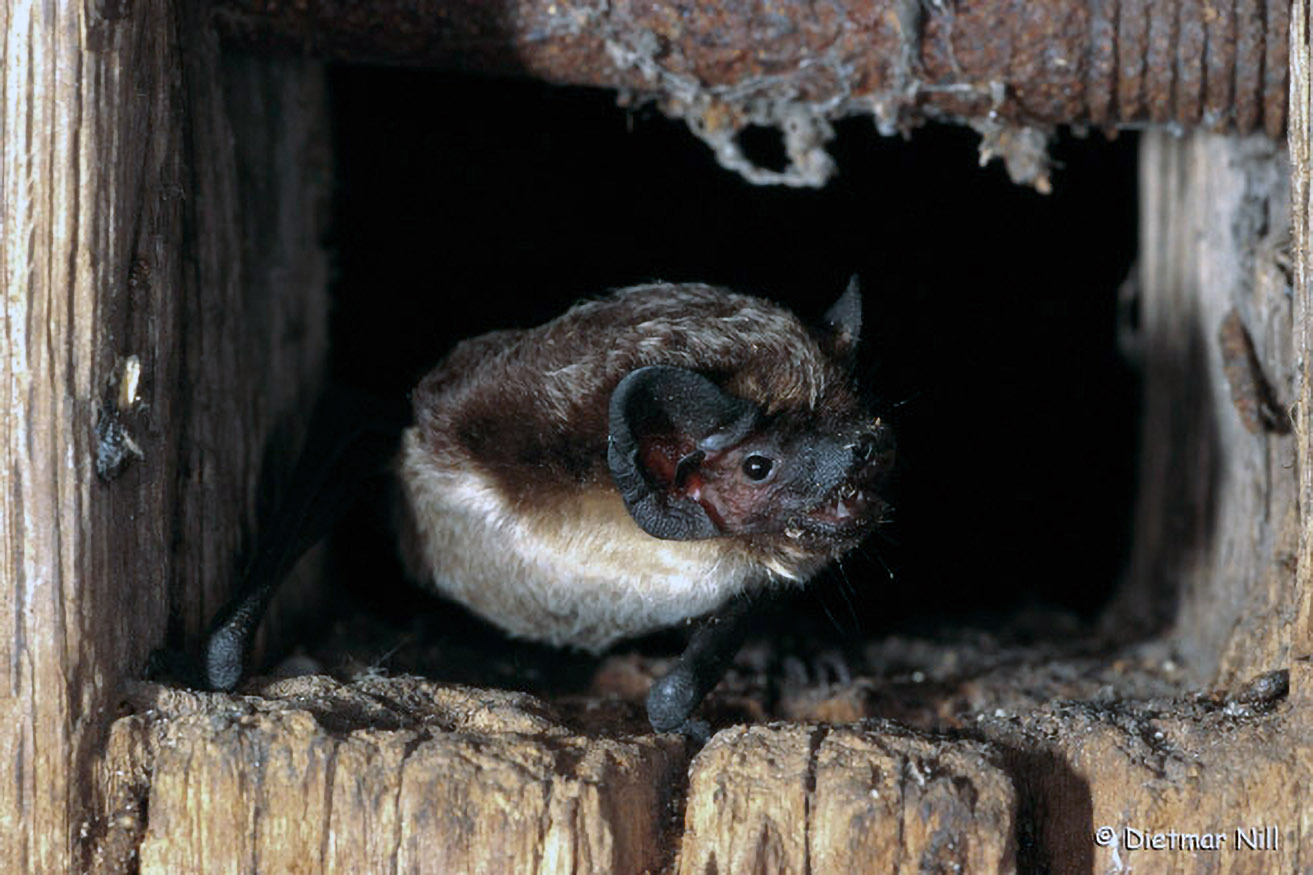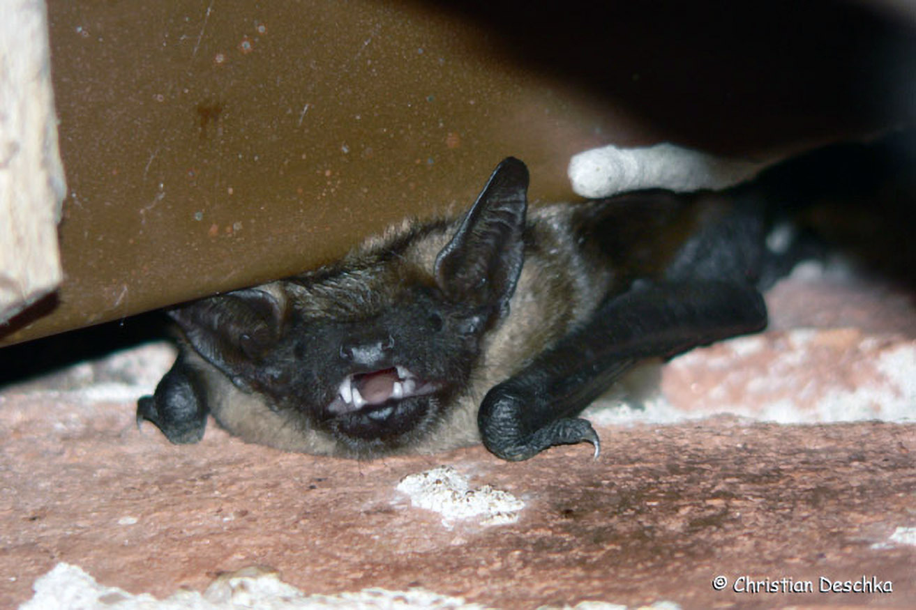 Die kleine Zwergfledermaus hätte mit zusammengefalteten Flügeln in einer Zündholzschachtel Platz. Dieser Winzling bewohnt gerne Spalten an Gebäuden. Wenn er Jalousienkästen bezieht, wird er manchmal verletzt.