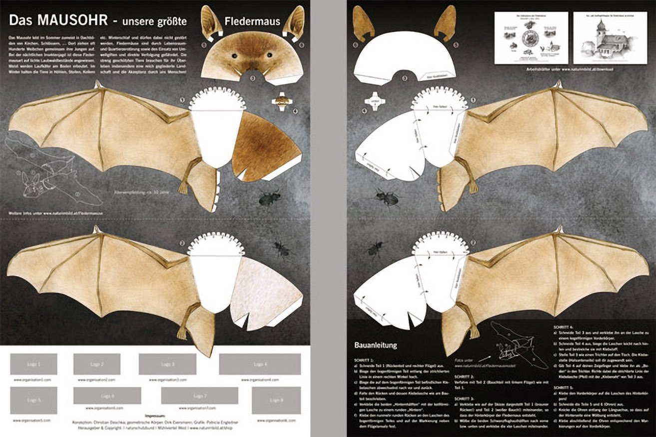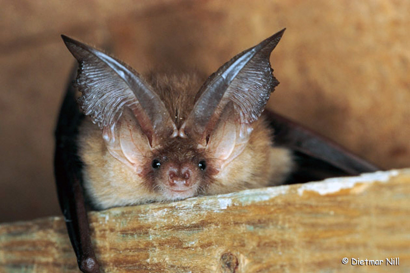 Mausohren sind mit einer Spannweite von 40 cm unsere größten Fledermäuse. Diese ehemaligen Bewohner warmer Felshöhlen nützen in unseren Breiten Dachböden von Kirchen etc. als Ersatzhöhle.