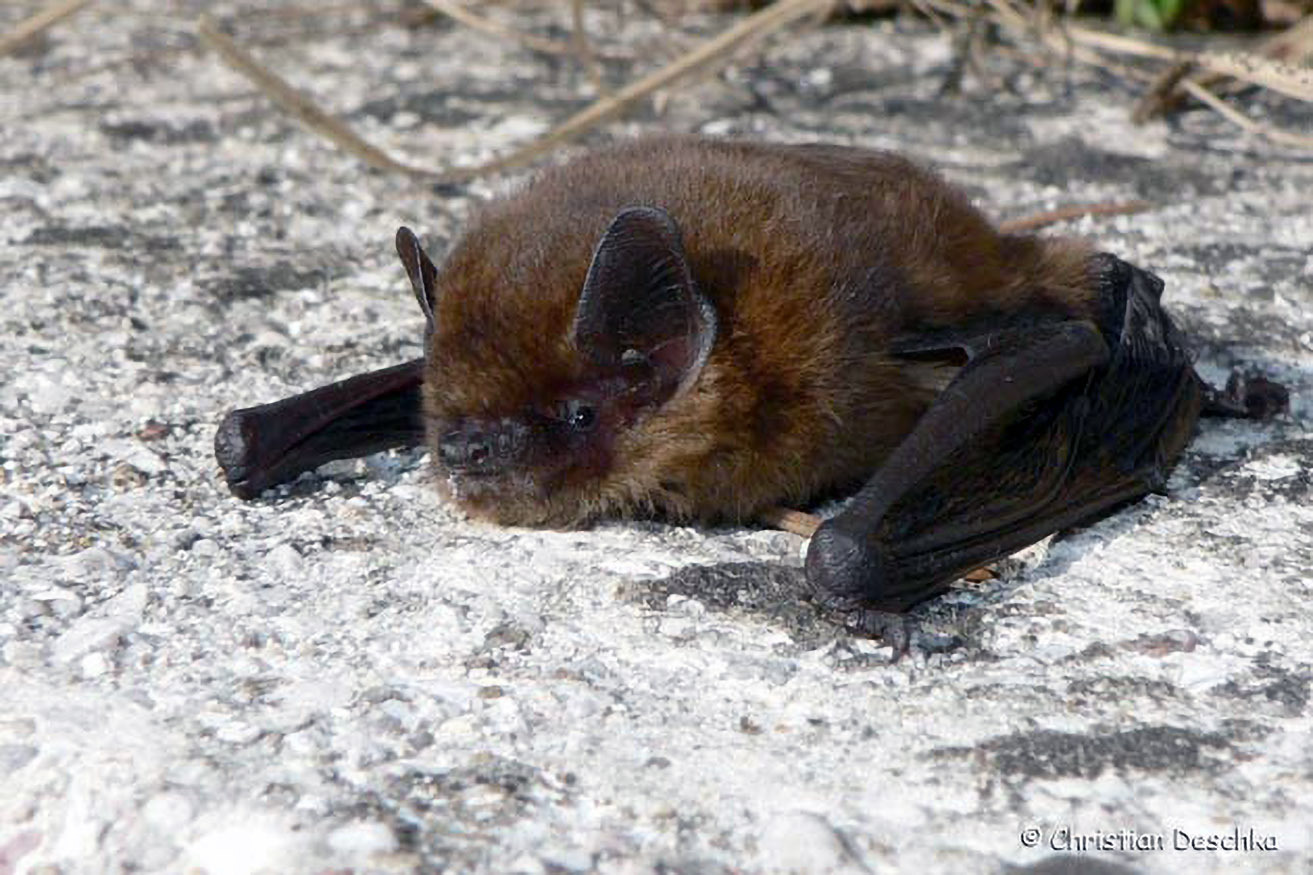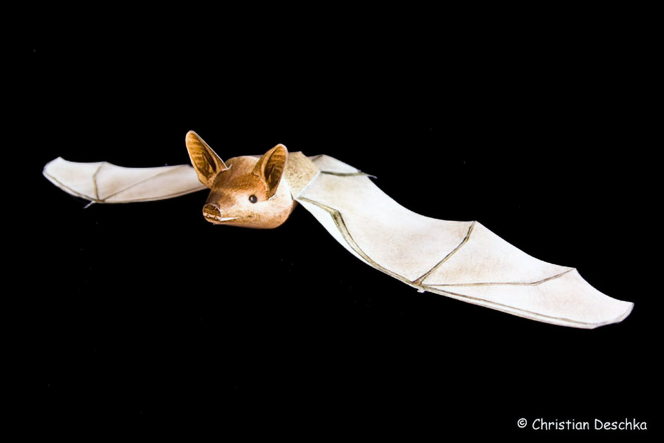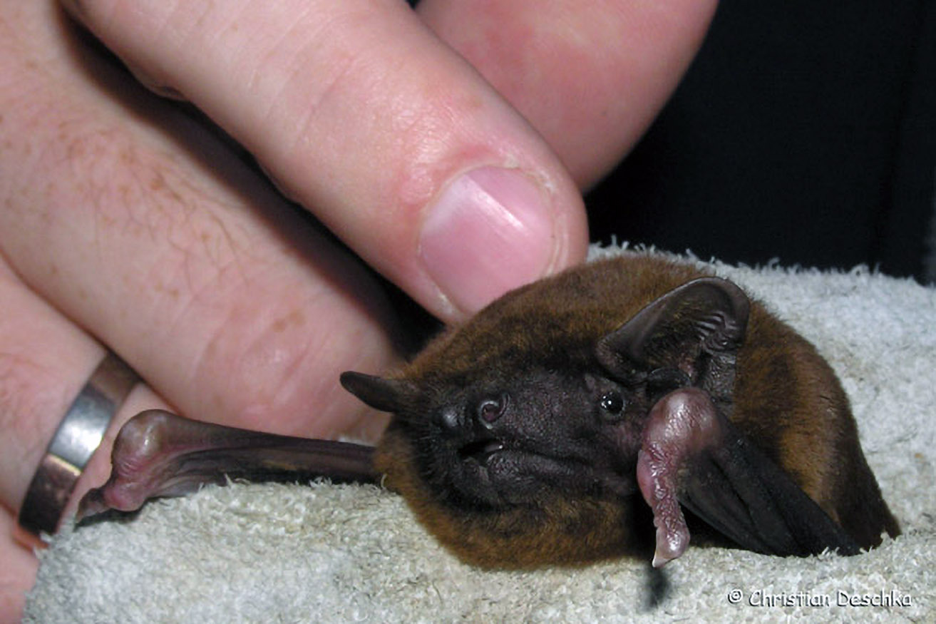 Müssen Fledermäuse auf Grund einer nicht heilbaren Verletzung in Dauerpflege bleiben, werden sie wie dieser Abendsegler als "Botschafter für Fledermäuse" bei Veranstaltungen eingesetzt.