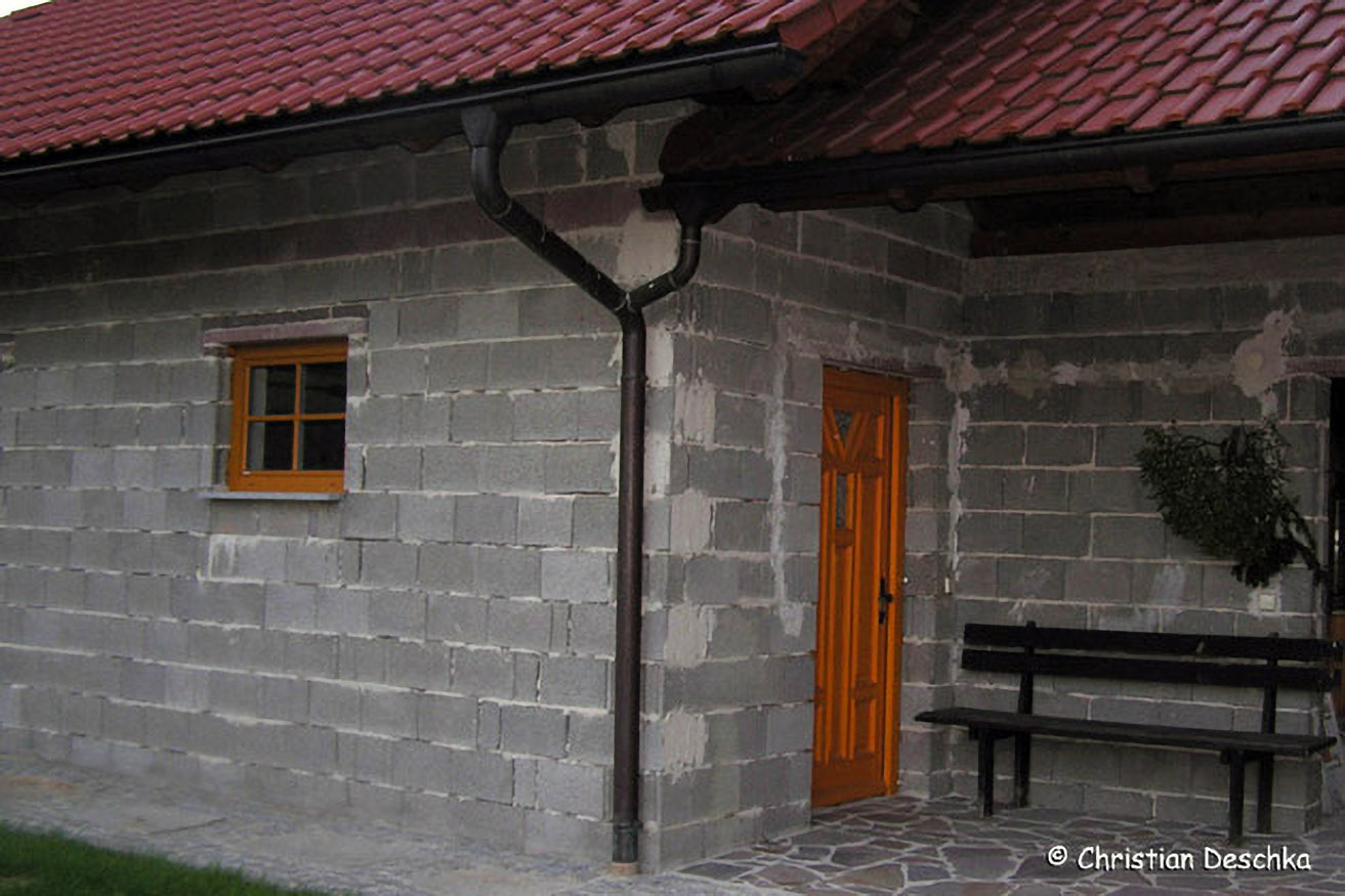 An diesem Haus fanden wir hinter der Verschalung als auch hinter der Balkonverkleidung Mopsfledermäuse.