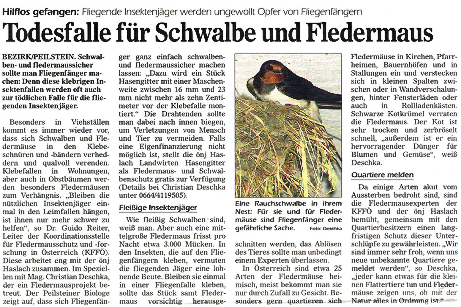 Wir animierten Landwirte dazu, von uns zur Verfügung gestellte Gitter vor Fliegenfängern anzubringen. Dadurch können nur mehr Fliegen, nicht aber Fledermäuse und Schwalben daran hängen bleiben.