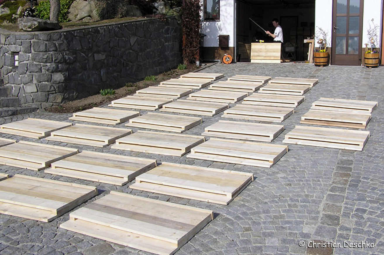 Mittlerweile werden die Fledermausbretter von geschützten Werkstätten hergestellt, nämlich von STABIL in Rohrbach (www.promenteooe.at/stabil/) und ARCUS in Peilstein (http://www.sozialprojekte.com/projekt/pro-53).