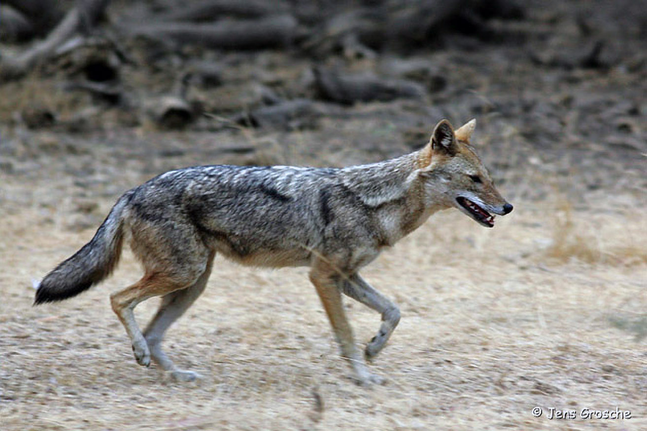 Im feuchten Lebensraum des Goldschakals hat man aber gute Chancen die Pfotenabdrücke und Spuren zu finden. Für die gut fuchsgroßen Trittsiegel ist typisch, dass die beiden vorderen Ballen hinten miteinander verwachsen sind.