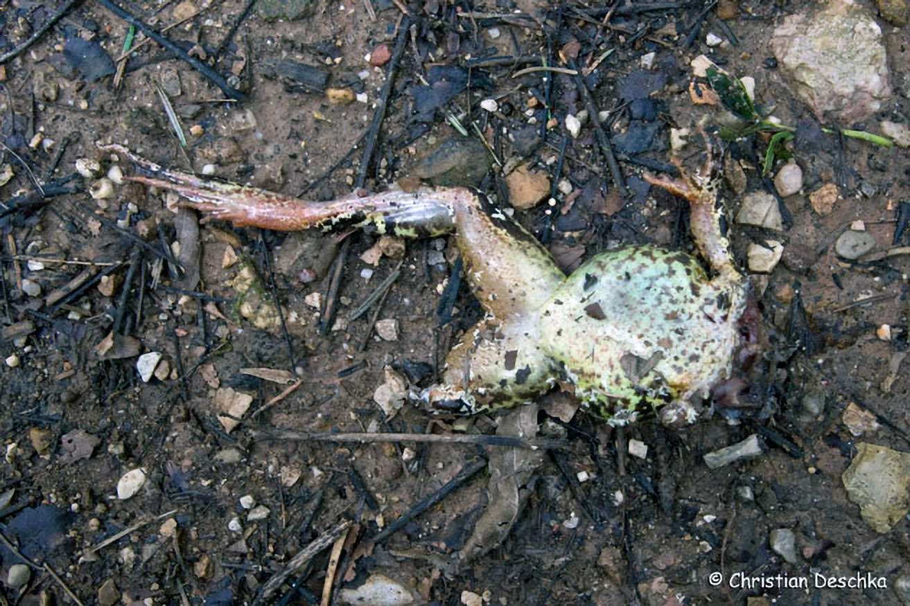 Grasfrösche haben viele Feinde. Bereits die Laichballen werden von verschiedenen Molcharten geplündert.