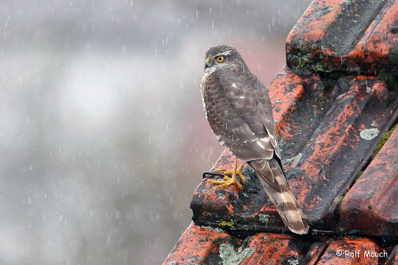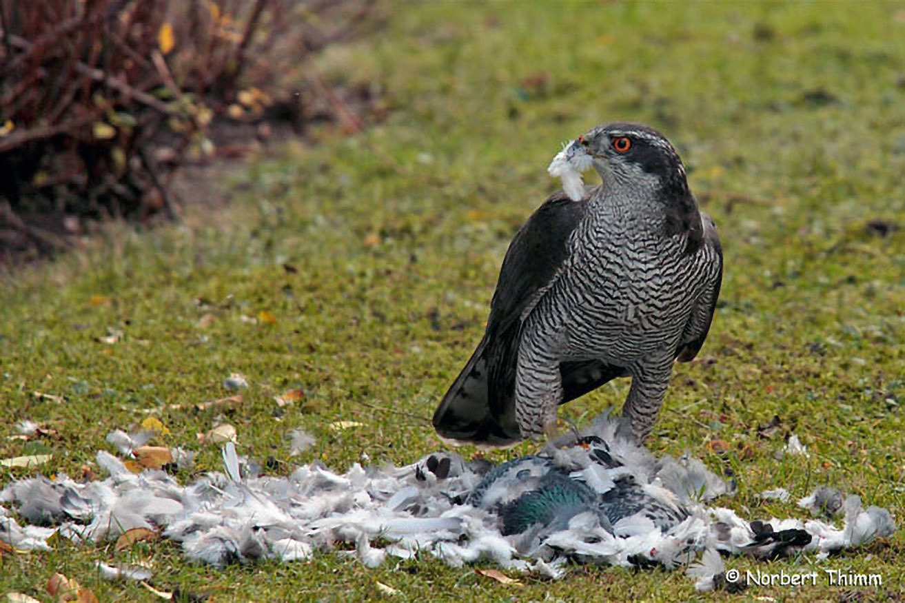 Der Habicht sieht aus wie ein großer Sperber. Dieser spektakulär jagende Greif schlägt zumeist Vögel in der Größe einer Taube. Dass auch Haustauben auf seinem Speiseplan stehen, bringt ihm wenig Sympathien ein.