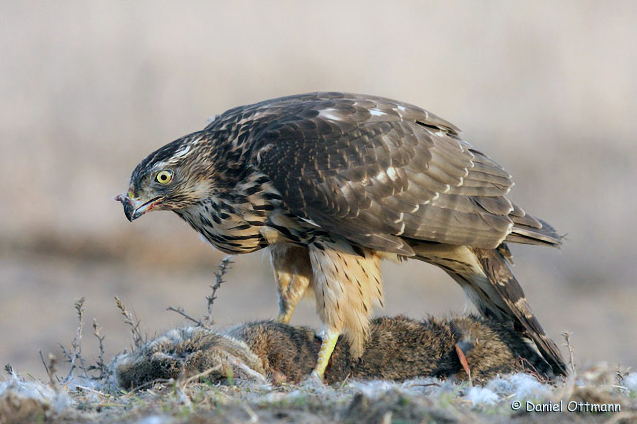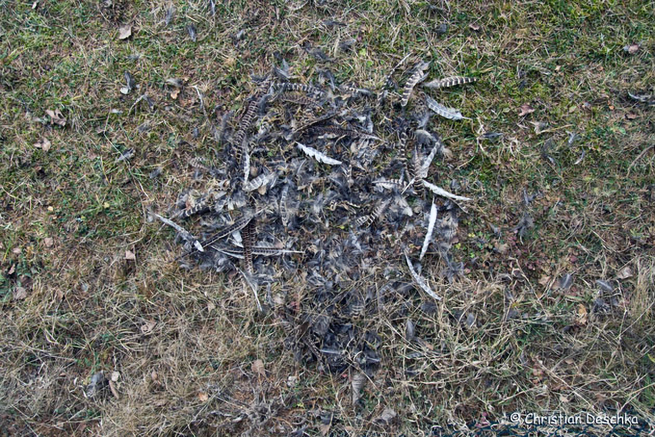 Insbesondere bei fehlendem Deckungsangebot schlägt der Habicht jedenfalls auch größere Tiere. Von dieser Fasanhenne blieben nur mehr Federn, Beine und Schnabel über.