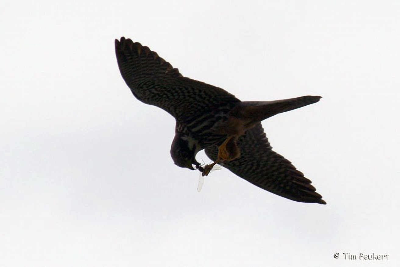 Auf der Jagd schraubt sich der Wanderfalke in die Höhe, hält nach fliegenden Vögeln Ausschau und versucht diese im Sturzflug zu erbeuten. Dieser relativ große, kräftige und kompakte Falke ist für geübte Beobachter auch an seinen Umrissen erkennbar.
