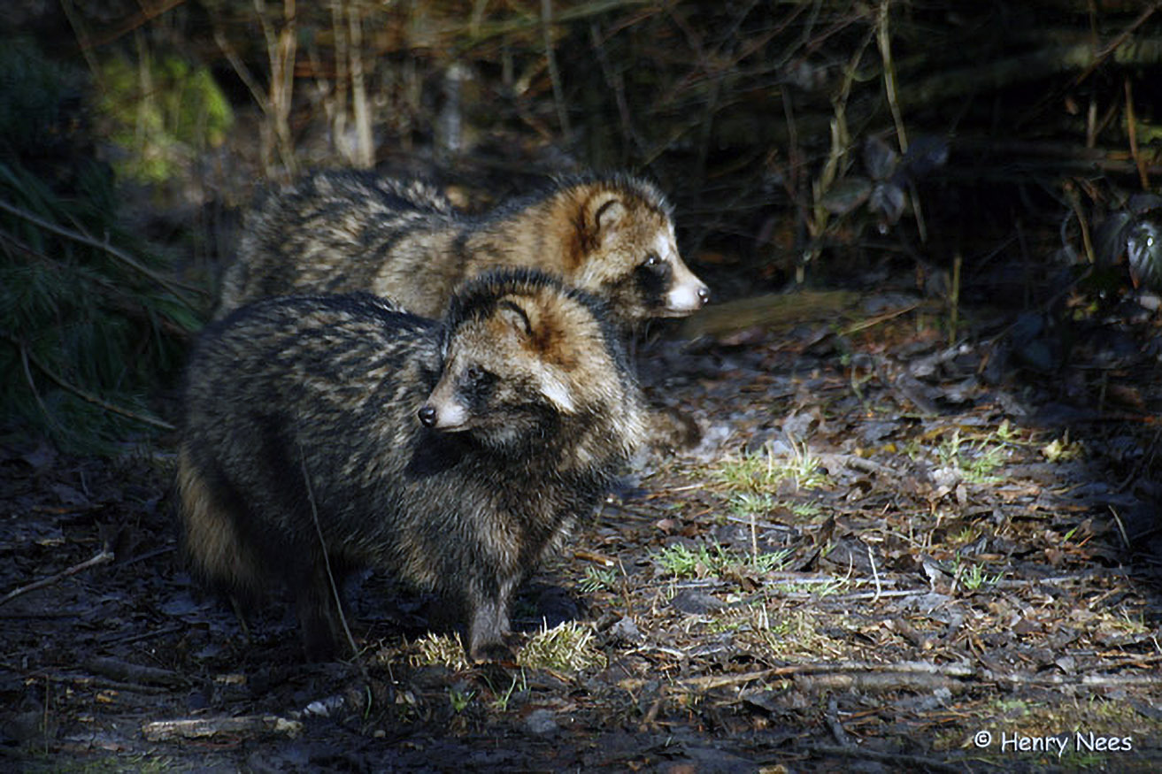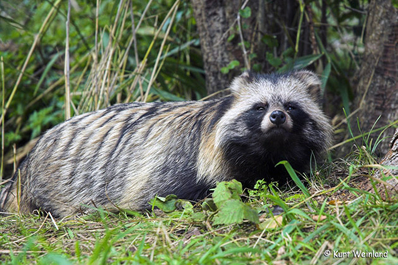 Der Marderhund oder Enok stammt aus Ostasien und wurde als Pelztier in Russland eingebürgert. Von dort aus erobert(e) er Mitteleuropa. Das lange Fell und die kurzen runden Gehöre sind ein Erbe aus der kalten Heimat, der dieser Neubürger entstammt.