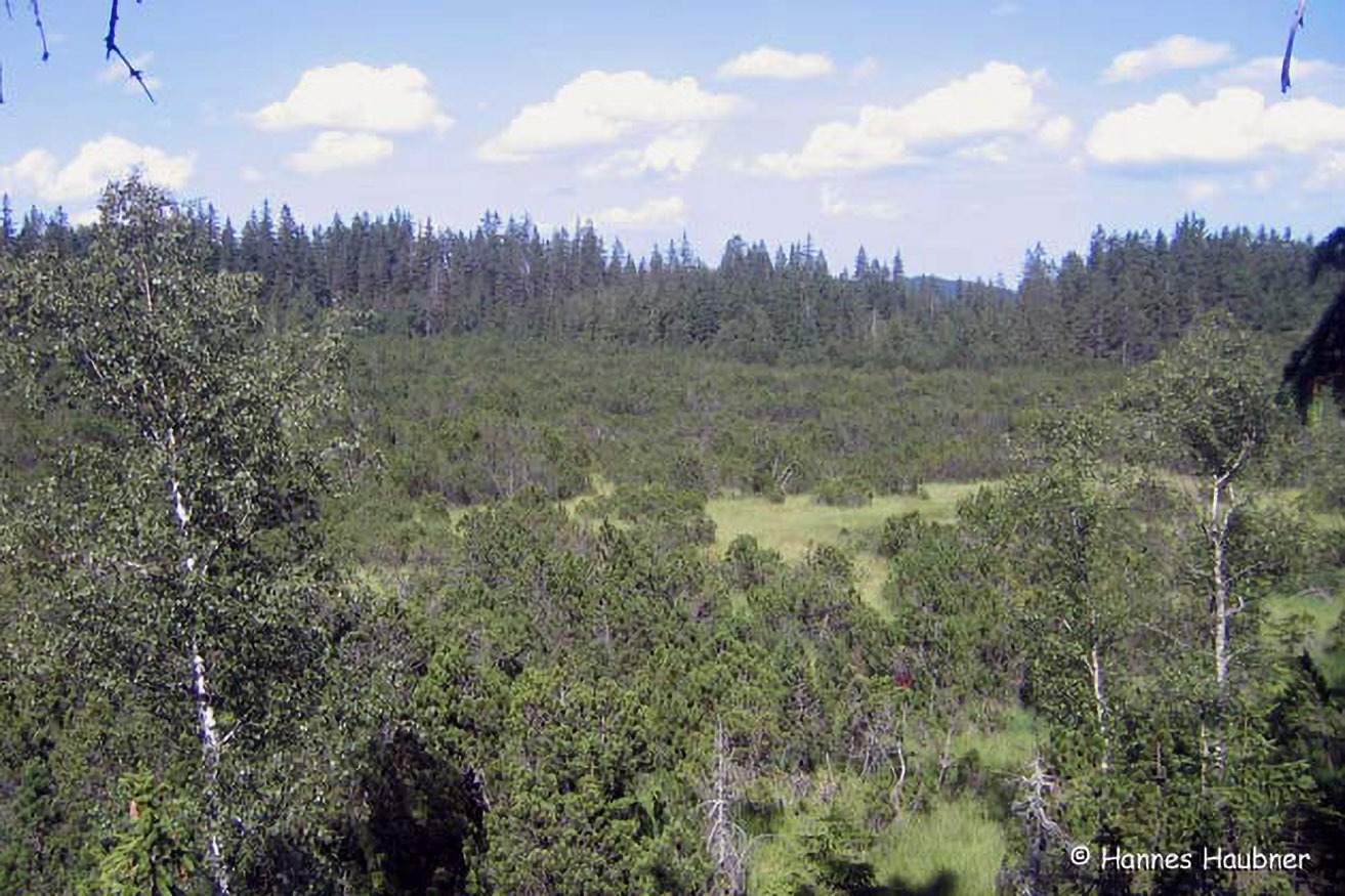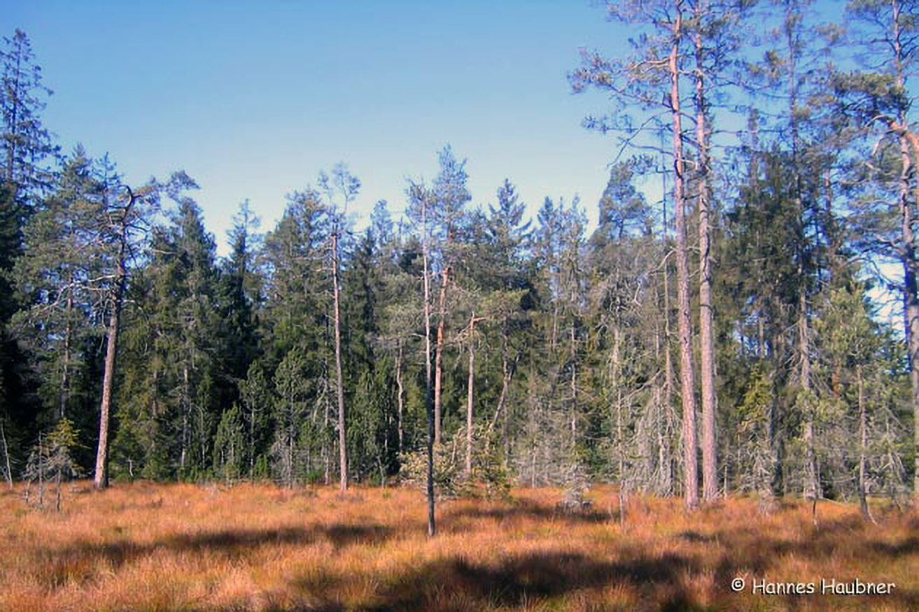 Zahlreiche Hochmoorstandorte des Mühlviertels sind mit lichten Moorwäldern bestockt. Hier wachsen neben den bestandsbildenden Rot-Kiefern gelegentlich auch Spirken.