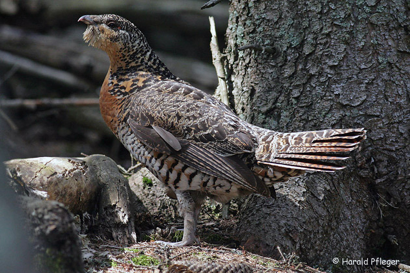 Das Haselhuhn ist jenes Waldhuhn, das sich noch am längsten halten konnte. Doch auch dieser Hühnervogel zählt bereits zu den absoluten Raritäten der heimischen Wildbahn. Hier sehen wir eine im Moorwald brütende Henne.