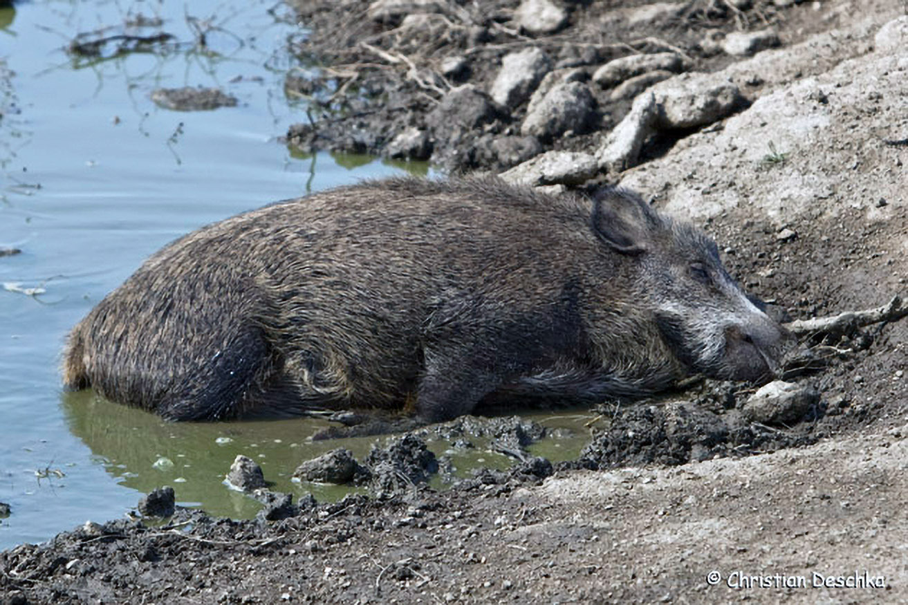 Schwarzwild suhlt sich gerne. Schwarzkittel kommen hauptsächlich in den waldreichen Gebieten im Norden als auch in der Donauleitn vor. In den letzten Jahren haben die Bestände dieser geselligen Wildart zugenommen.