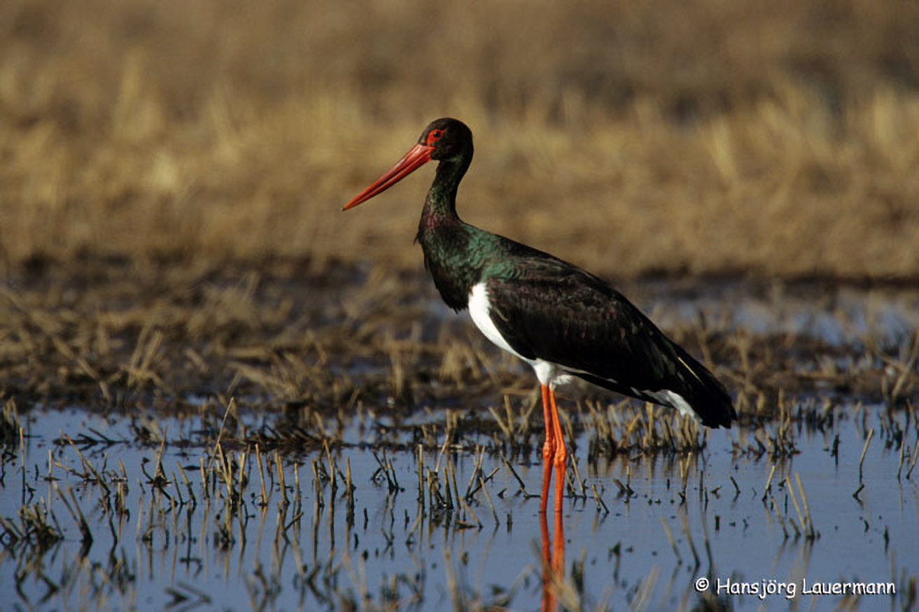 Der Weißstorch brütet auf hohen Rauchfängen und geht in der Kulturlandschaft des Umfeldes auf Nahrungssuche. Er fängt dabei Frösche in Feuchtwiesen genauso wie Mäuse und andere Bodenorganismen auf frisch gepflügten Feldern.