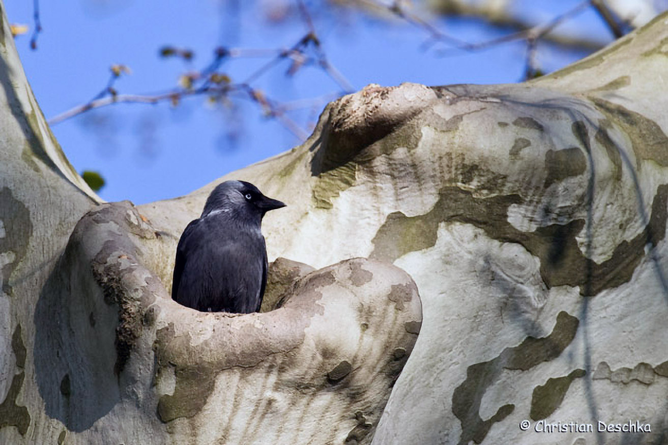 Die Dohle brütet in Baumhöhlen sowie in Hohlräumen von Gebäuden. Sie ist lernfähig und nutzt Kirchendachböden genauso als Brutplatz wie Rauchfänge. In diesen klettert sie hinunter und errichtet ihr Nest hinter dem Rauchfangkehrertürl.