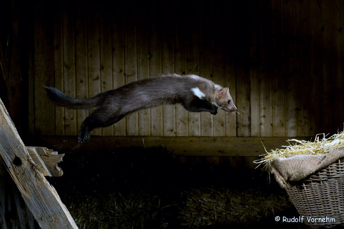 Der Steinmarder ist ein ungemein geschickter Kletterer und Springer. Er nutzt Scheunen und Dachböden als Unterschlupf und Jagdrevier. Die scheuen und nachtaktiven Tiere kann man dort aber eher hören als sehen.