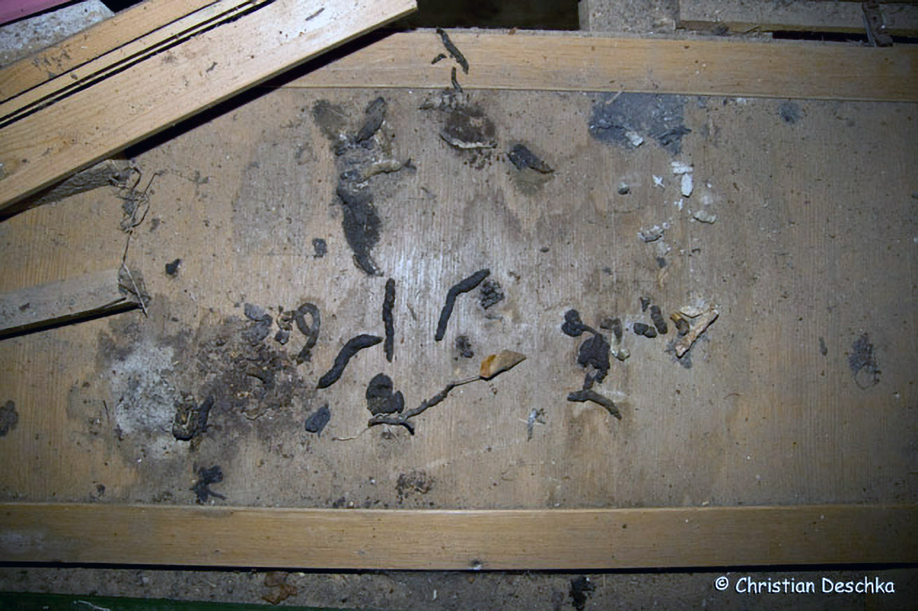 Ein "Marderklo" ist ein eindeutiger Hinweis auf eine regelmäßige Nutzung eines Dachbodens durch Marder. Typisch sind ca 10 cm lange, eingedrehte Kotwürste, die häufig Haare und Knochen enthalten. Frische Losungen sind dunkel-, alte hellgrau.
