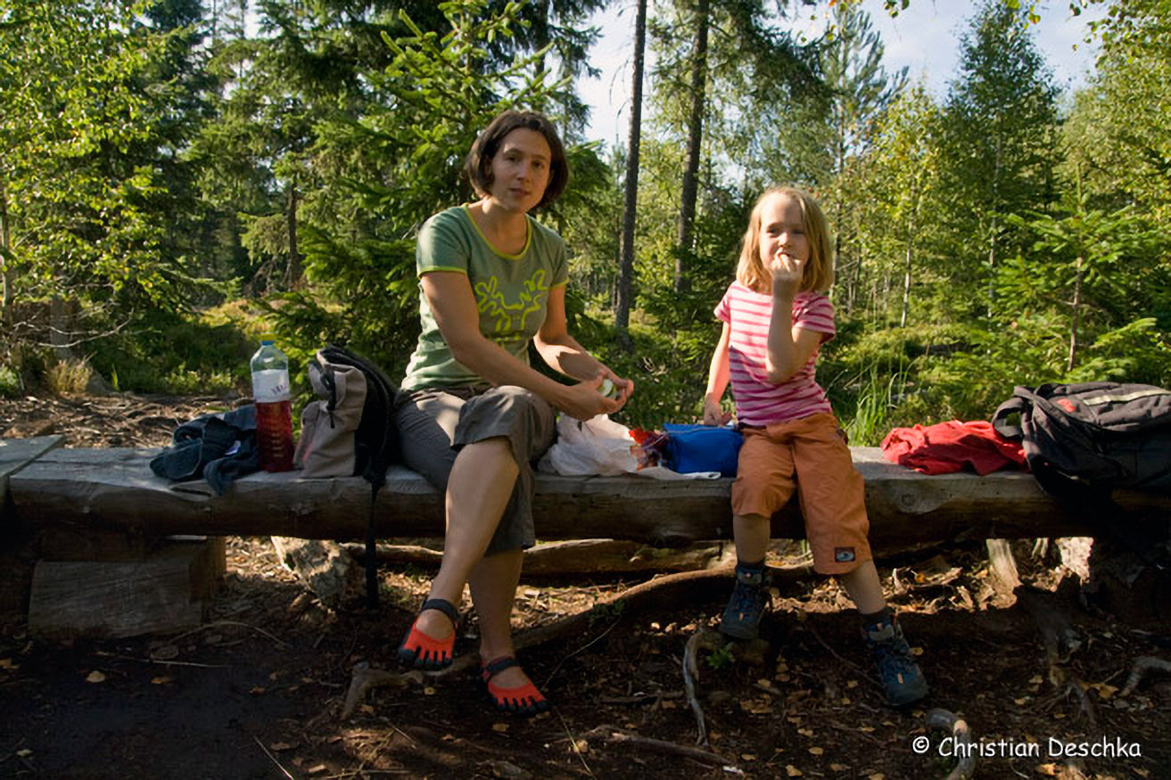 An einer Stelle mit dem originellen Flurnamen "Kuawaumpen" laden Baumstümpfe als Sitzgelegenheit zu einer weiteren Pause ein.