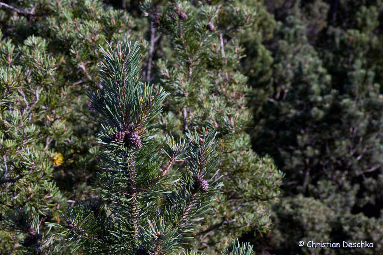 Am Wegrand gedeihen Rotföhren, die sehr anspruchslos sind und selbst im Bereich von Mooren vorkommen.