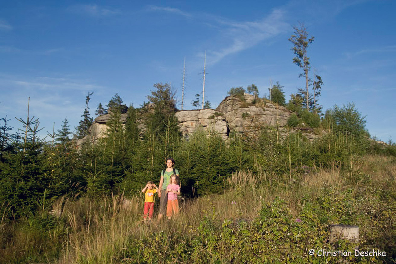 Schließlich nähern wir uns den "Lehrmüller Mauern", einer Granitformation mit typischer "Wollsackverwitterung".