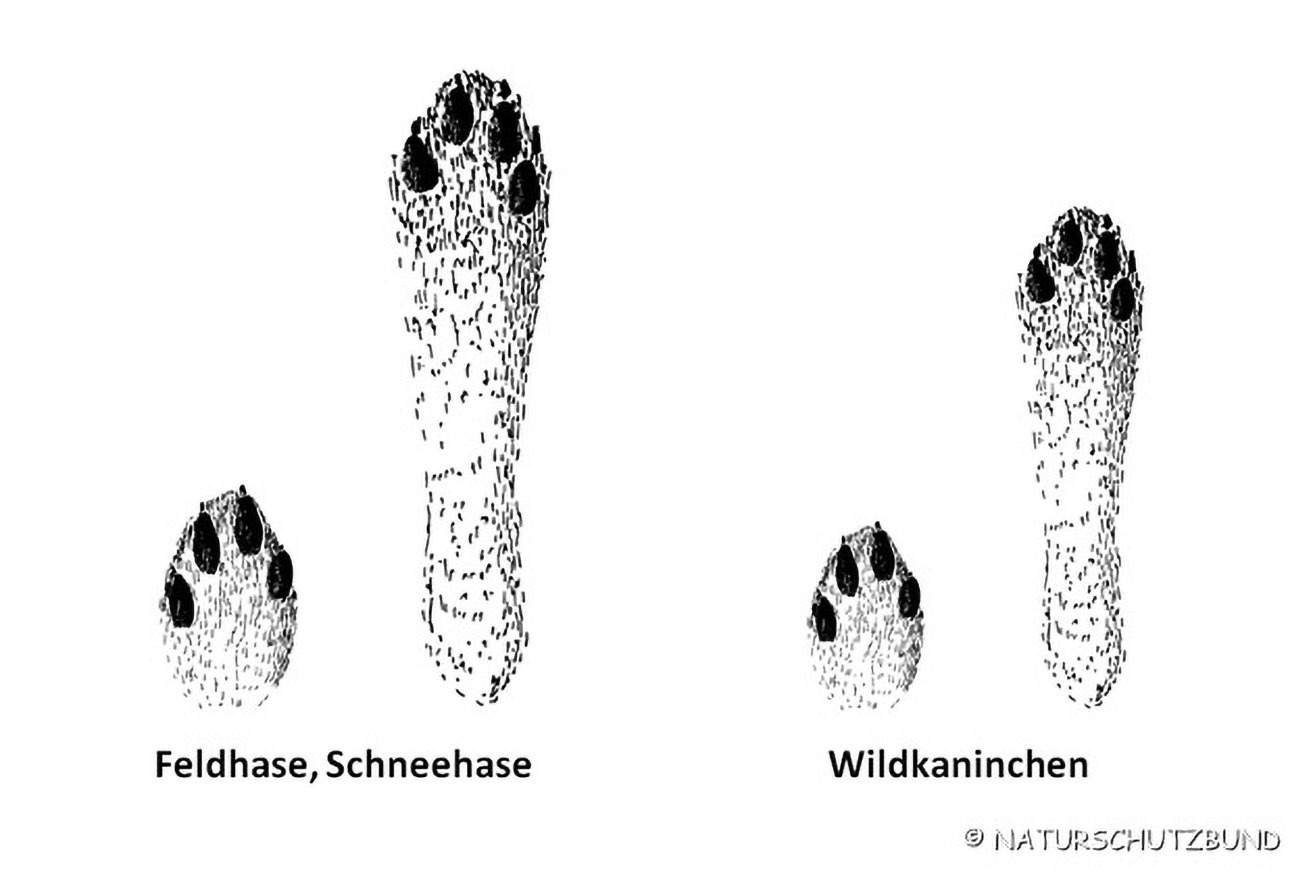 In der Hasenspur sind fast immer kleine Abdrücke der Vorderfüße und lange Abdrücke der Hinterfüße vorhanden. Haarbüschel täuschen jeweils vier Ballen vor. Zusätzlich sieht man oft Abdrücke der spitzen Krallen.
