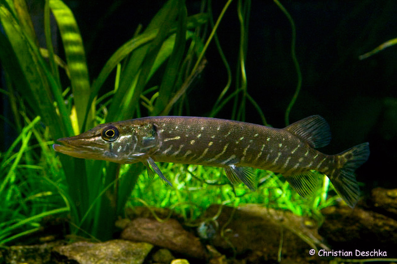 Besonders beeindruckend ist der Hecht. Seine weit nach hinten verlagerte Rücken- und seine Afterflosse ermöglichen einen "Raketenstart" dieses Raubfisches aus der Ufervegetation von Flüssen und Seen.